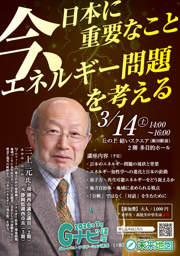 三上元氏を招いて日本のエネルギー政策についてみなさんと考えるGナビ講座(グローバル・ナビゲーション講座)を開催いたしました。